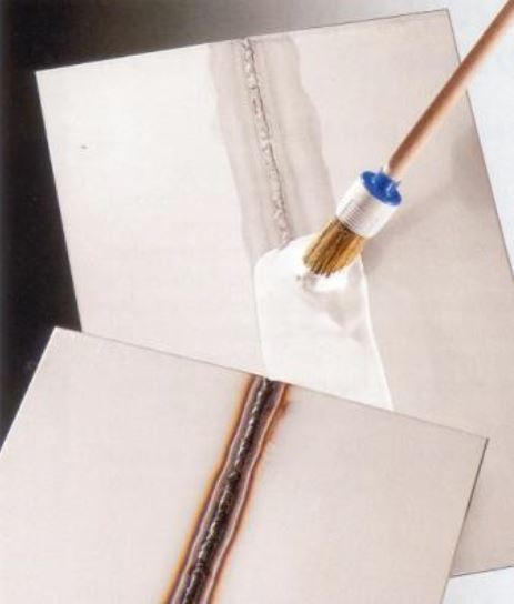 POLINOX P je bílá roztíratelná mořící pasta pro rychlou a hospodárnou úpravu svaru na austenitické chrom – niklové oceli a na materiálu s vyšším obsahem niklu. Spolehlivě odstraní okuje, zabarvení, železo a tepelně ovlivněné oblasti. Stávající koroze je pozastavena a tím je obnovena na opracované ploše ochrana proti korozi.